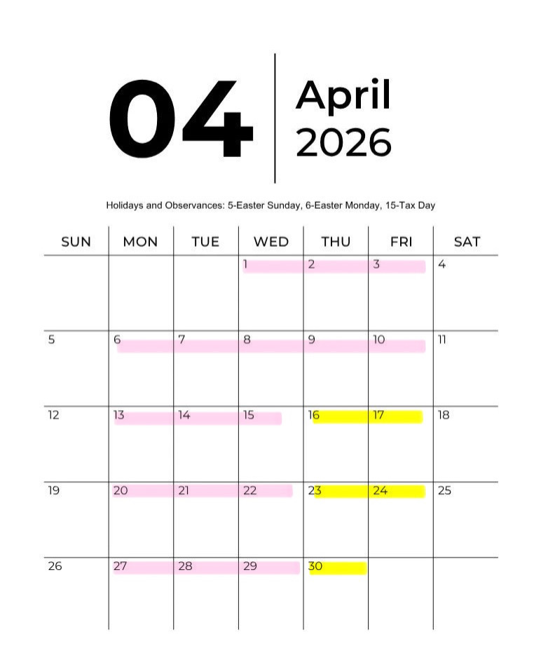 4月営業日のご案内